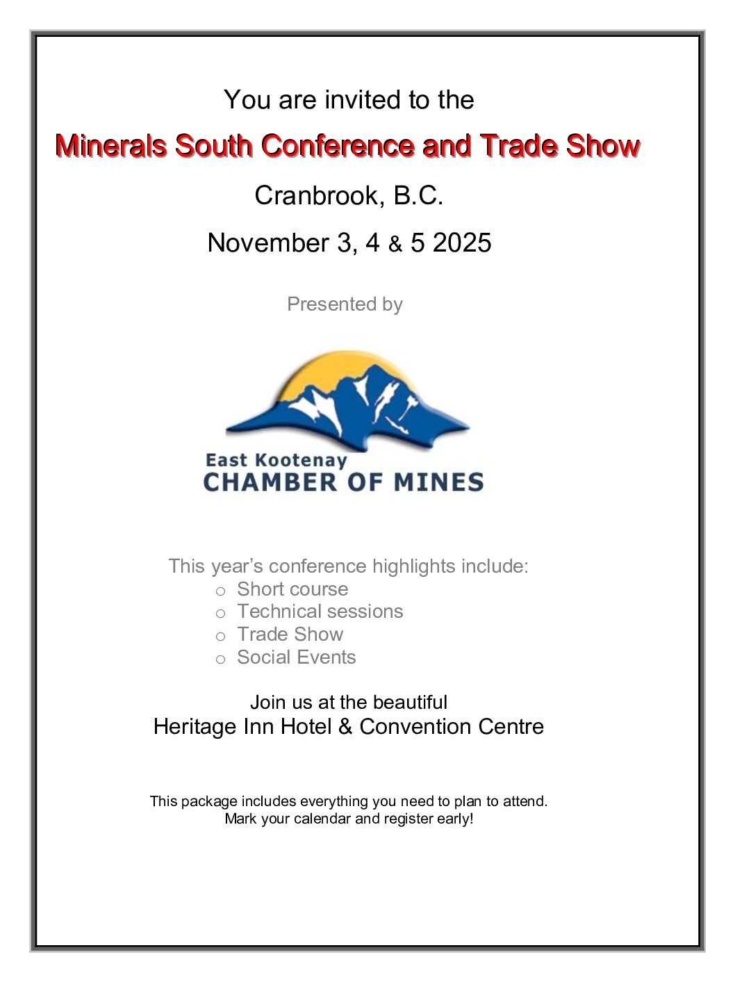Minerals South 2025 Package